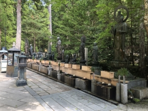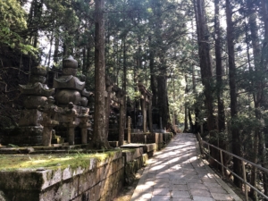 奥之院 弘法大師御廟は大師信仰の中心聖地で参道入り口一の橋から御廟まで約2キロの参道の両脇には何百年も経った老杉が高くそびえ、もとには二十万基を超える墓碑が並んでありました。 墓碑には戦国時代の名将から各地の大名・現代では大手の会社名が連ねて有り、その力量を比べているようでとても興味深っかった。
