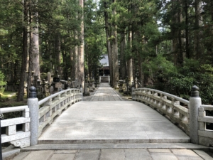 御廟橋から見た奥之院弘法大師御廟・・ここからは先は写真NGでした。 御廟のほかに藤原道長によって建立された灯籠堂があり、その正面には1000年近く燃え続けている二つの消えずの火がありました。 その一つが祈親上人が献じた「祈親燈」、もう一つは白河上皇が献じた「白河燈」といいます。