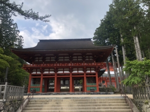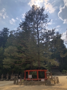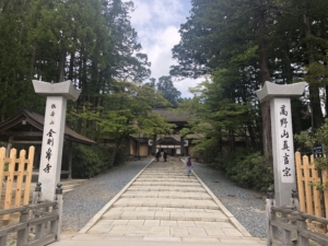 弘法大師(空海)が高野山を開創した際に、母公・玉依御前が滞在した慈尊院に、必ず9度は下山したことから「九度山」なずけられました。 慈尊院から始まる高野山への道は、高野七口とよばれる七つの参詣道の主要道となり高野参詣道町石道と言われます。 慈尊院から高野山まで180本の町石が建てられており1町約109mの距離との事でした。 我々の車は大きいのでこの道をたどる事が出来ないので、かつらぎ町まで降りて国道480号線で高野山に上ることにしました。 車🚙が少ない朝早に出発、約1時間かけて高野山の大門を通り抜け奥の院前の駐車場に到着。 もうすでに修学旅行のバスが沢山来ておりました。