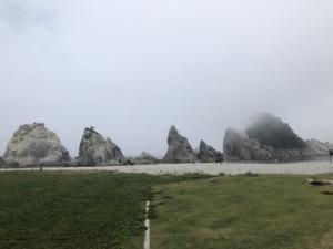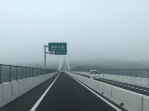 田老町を過ぎると益々天候が悪くなり、橋の上を走っているのか雲の上を走っているのか分からなくなる危険な状態。 そのため本日の宿は北限の海女さんがいる久慈市に決定。