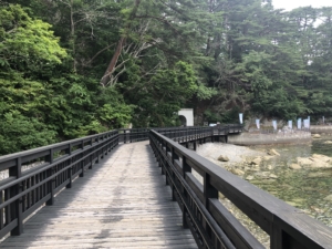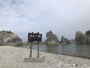 浄土ヶ浜は今から約5200万年前に古第三紀に形成され、火山岩からできてた白い岩と小石によって入り江が造られており、外海から隔てられているため波も穏やかで海水浴にに適した地形になっています。 また岩の上には岩手県の県木である「ナンブアカマツ」などの常緑樹があり、白い岩とのコントラストが日本庭園の様に美しく、浄土の世界の様だとも言われております。 ここも震災で遊歩道などが破壊されていましたが現在は修復されており以前来た時より良くなっていました。