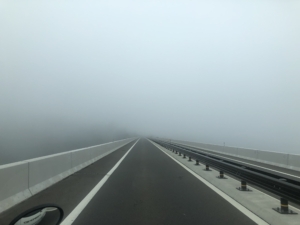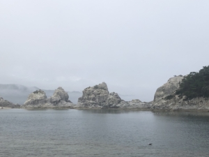 田老町を過ぎると益々天候が悪くなり、橋の上を走っているのか雲の上を走っているのか分からなくなる危険な状態。 そのため本日の宿は北限の海女さんがいる久慈市に決定。