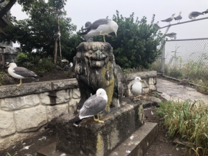 久慈市を後にしてせんべい汁でも有名な八戸市を訪れました。 八戸市の観光スポットと言えば蕪島です。 蕪島はウミネコの繁殖地として国の天然記念物に指定されいます。 2015年の火災によって全焼しましたが、ウミネコの繁殖時期(4月~8月)に工事ができず約5年の歳月をかけて再建したとの事でした。 神社を参拝するには雨でもないのに傘が必要との事で入口に傘が準備して有りました。 ウミネコが沢山住んでおり空からウミネコの「うんち」が降ってくるためで、我々も参拝するに匂いと糞の多さに散々でした😭😭😭。