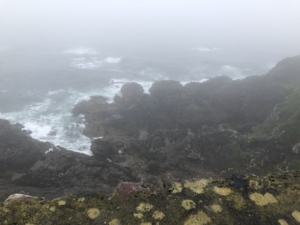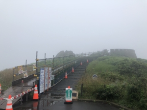 蕪島を見学後、葦毛崎展望台を見に行きました。 ここは太平洋戦争末期に旧日本軍が軍事施設として使用した遺跡で、現在は展望台として親しまれていました。 行った時はあいにく雨も降っており、また霧も発生して何も見えなかったのが残念でした。