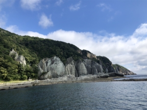 自然と神秘が刻んだ迫力の造形美仏ケ浦 仏ケ浦は佐井村南部にある高さ90m級の岩が2㎞以上にわたり並び連ねる景勝地で古くは仏宇陀(ほとけうだ)と言われいました。 「うだ」とはアイヌ語で浜という意味だそうです。
