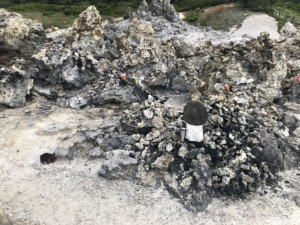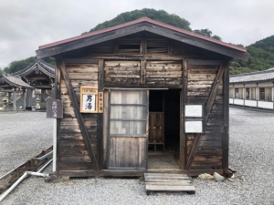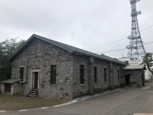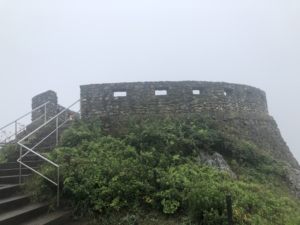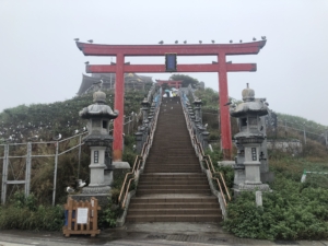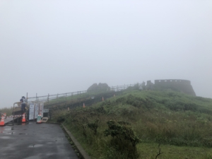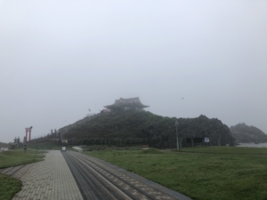 蕪島を見学後、葦毛崎展望台を見に行きました。 ここは太平洋戦争末期に旧日本軍が軍事施設として使用した遺跡で、現在は展望台として親しまれていました。 行った時はあいにく雨も降っており、また霧も発生して何も見えなかったのが残念でした。