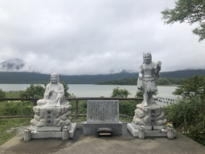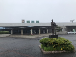 残念ながら今日も雨がシトシトと降っています。😭😭😭 今回の旅はあまり天候に恵まれないようです。 道の駅の前に歴道路広場がありましたので見に行きましたが開いている店が1件、コロナの為かどうか分かりませんが寂しい思いです。 朝一が有ると妻が言うので開催場所を見ても何もなっかったので電気屋のおじさんに聞いてみたら我々の勘違いで笑われました。😅😅 その後近くの巽山神社を参拝。 この神社は久慈湾を一望できる小高い丘に建っており恋愛成就のパワースポットと言われているそうです。 どこの神社に行ってもこのような文言が有りますね😀😀😀。 近くには近代柔道の礎を築いた講道館柔道(空気投げでも有名)の三船十段の記念館がありました。