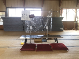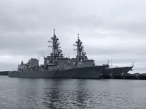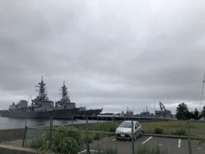 海上自衛隊大湊地方隊基地 明治35年の海軍大湊水雷団の開庁から発展してきたむつ市大湊。 大迫力の艦艇が目の前に停泊していました。 また、関連施設では、旧海軍の資料の見学や自衛隊グッツやグルメの購入ができました。 海上自衛隊の施設に入ってすぐ名前を記入していたら、施設の方から「TVの報道見ましたか?」と言われ「先程速報で見ました」と回答。 狙撃とは非常に非道な残念な出来事ですね・・・・! 海上自衛隊は毎年ねぶたの出し物を作って参加しているそうでその出し物の原画と写真が展示して有りました。