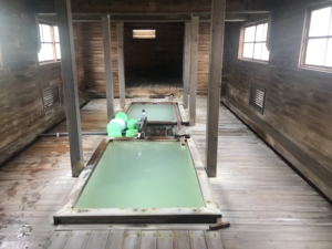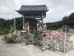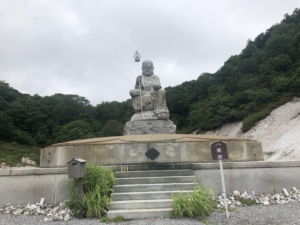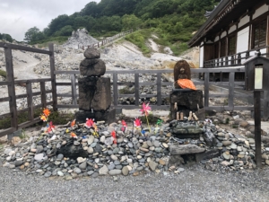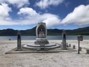 今日は下北半島をぐる~と一周する予定で出発。 最初に日本三大霊場にかぞえられる恐山へ向かいました。 恐山は約30年前に一度行った事があり、信仰と祈りの場として、個人を偲ぶために全国から多くの人達が足をはこんできています。 火山活動によって形成された宇曽利山湖などのジオサイトを見ることができます。 火山ガスの噴出する岩肌の一帯は地獄に、そして湖をとりまく白砂の浜は極楽になぞえられているとの事でした。 見学後、温泉に入って清めて来ました。 元来温泉は「清めの湯」と言われ参拝する前に浴びてから入山したそうですが、我々は逆でした😅😅😅。 温泉が4つ有りますがいずれも源泉かけ流し。 更衣室と浴室は板一枚で隔てられただけのシンプルな作りで洗い場なし。 湯は肌がピリピリするほどの強酸性で温度も高めでしたので加水して私は数秒で入浴くしました😅😅😅。(現地には源泉温度の表示が有りませんが、70℃前後といわれています。)
