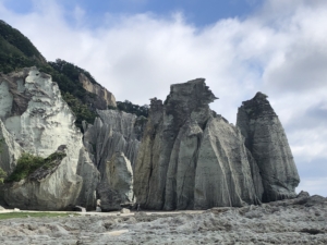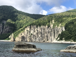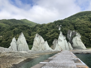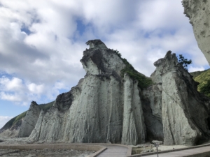 自然と神秘が刻んだ迫力の造形美仏ケ浦 仏ケ浦は佐井村南部にある高さ90m級の岩が2㎞以上にわたり並び連ねる景勝地で古くは仏宇陀(ほとけうだ)と言われいました。 「うだ」とはアイヌ語で浜という意味だそうです。