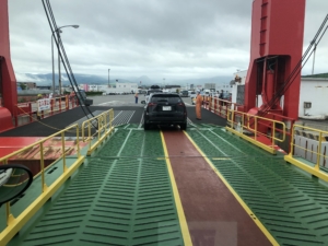 朝、風が強くて午前4時半に眼が覚め、窓を開けてみるとなんと小雨模様😱😱。 今回の北海道旅行はアンラキーにも雨に祟れて先が思いやられるようです。 普段の行いが悪かったか反省しています😅😅😅。 とりあえず早めの朝食を取り出発準備をしてフェリー埠頭に向かいました。 出港1時間半以上前に到着したのにもうすでに数十台の車が待機していました。 早速乗船手続きを終え乗船ラインに駐車、結局私のプルミエGOが最後でした。 雨のため乗船するフェリーの写真も撮り忘れました😭😭😭 大間港を午前7時に出向、函館港に8:30に到着しました。