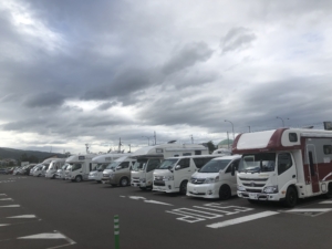朝目が覚めて周りを見渡すと、なんとキャンピングカーの展示会の様に沢山のキャンパーが宿泊していました。 ゆっくりと出発の準備をして本日の観光地・大沼公園を目指し出発・