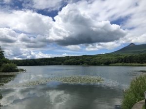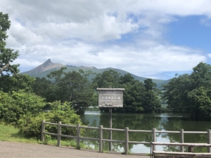 湖の向こうに見えるのが北海道駒ヶ岳です。 もともと富士山と同じ形をした山でしたが噴火の為、現在の形になったそうです。 駒ヶ岳の標高は1,131mで現在も火山活動が活発なため平成10年から禁止していましたが「馬の背」地点まで入山が緩和されているそうです。