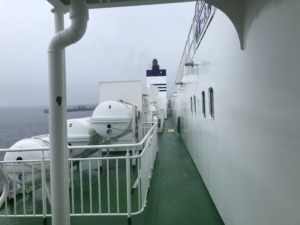 朝、風が強くて午前4時半に眼が覚め、窓を開けてみるとなんと小雨模様😱😱。 今回の北海道旅行はアンラキーにも雨に祟れて先が思いやられるようです。 普段の行いが悪かったか反省しています😅😅😅。 とりあえず早めの朝食を取り出発準備をしてフェリー埠頭に向かいました。 出港1時間半以上前に到着したのにもうすでに数十台の車が待機していました。 早速乗船手続きを終え乗船ラインに駐車、結局私のプルミエGOが最後でした。 雨のため乗船するフェリーの写真も撮り忘れました😭😭😭 大間港を午前7時に出向、函館港に8:30に到着しました。