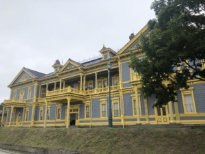 旧函館区公会堂 函館・元町公園の上、函館港を見下ろす高台にある1910年建造の建物。 左右対称のコロニアルスタイルで、灰色と黄色のコントラストが特徴的でした。 館内も貴賓室や130坪の大広間などを見学する事ができました。 豪かな旧函館公会堂は元町のランドマークとよばれ観光客や地元民に親しまれています👍👍。