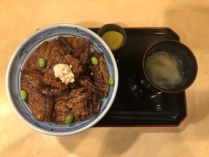 豚丼は昭和初期に帯広市内の食堂で、炭火焼した豚肉にうなぎの蒲焼風のタレを使用した丼を作ったのが『豚丼』の発祥と言われているそうです。 当初は農家や開拓者にスタミナ料理を提供したいとウナギを使おうと考えたものの、ウナギが高価で手に入らなかったため豚肉に目を付けたのが事の始まりの様でした。 色んな県からのバイクの人達がいたのでこの店に入りましたが、妻は炭火焼で無かったので味はイマイチと言っていましたが、私は美味しかった😋😋😋で~す。