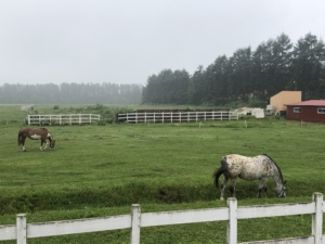 花畑農場に行く途中、雨の為素晴らしく見えるはずの農場や牧場が霞でよく見れないのが残念でした😢😢😢。