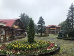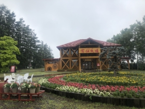 花畑牧場はタレントで酪農家の田中義剛が経営、生キャラメルで一時は脚光を浴びていましたが現在は下火になっているようでした。 現在は手造りチーズ、スイーツ、お菓子、ホエル豚の生産などを手掛けているようでした。 私達が訪れた時はオープン前で雨も降っていたので観光客は私達二人だけでした😅😅😅。