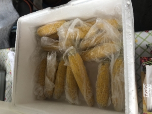 道の駅の横でフルーツコーンを販売していたので茹でたコーンを買って食べたら、なんと甘くてとてもおいしかった😋😋😋で~す。