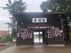 かつてNHKのテレビ番組「新日本紀行」で『幸福への旅~帯広~』として紹介されたのをきっかけに、愛国駅から幸福駅へのキャッチフレーズとともに一大ブームになった幸福駅👩🏻‍❤️‍💋‍👨🏻。 雨の日にもかかわらず沢山の恋人同士が訪れ、幸福駅の切符をまとめ買いしていました。 また駅舎に入ると壁いっぱいに恋人の名前や愛の言葉が架かれた切符が沢山掲示されていました。