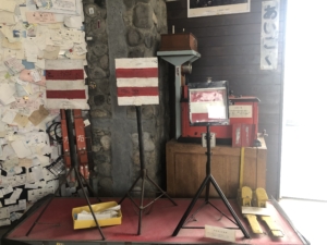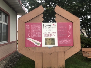 愛国駅と国鉄広尾線の歩み  愛国町は、明治29年の入植が始まりで、この地名は、ここに愛国青年団という団体があったことに由来しているそうです。 愛国駅は広尾線の開通と同時に昭和4年に設置され、広尾線の開通は南十勝発展の原動力となり、多大な功績と『愛国・幸福ブーム』の思い出を残し昭和62年に58年間の歴史の幕を下ろしました。 しかしロマンあふれる広尾線を後世に残すため鉄道資料館として整備されたそうです。 駅舎の中の壁には幸福駅とは違って全国から訪れた人の名刺や添え書きが沢山掲示されていました。