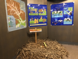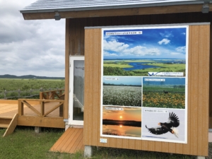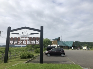 今日も天候が良いので厚岸から霧多布湿原の散策へ 最初に立ち寄ったのは厚岸水鳥観察館、1993年にラムサール登録湿地に認定された厚岸湖・別寒辺牛湿原において、水鳥をはじめとする動植物と湿地の保全や調査研究やモニタリング等を行う拠点施設として建設された施設。 一階には展示室、レクチャールームなどがあり、写真や解説パネルなどがあり学習しやすい環境が整っていました。