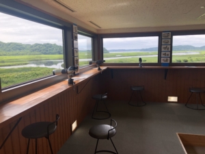 二階は観察コーナーになっていて、別寒辺牛川河川付近の雄大な湿原の景観をまじかに見る事ができました。