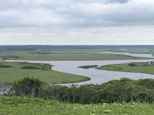 琵琶瀬展望台 霧多布湿原の高台にある展望台。360度見渡せる高台から広大な景色の琵琶瀬川や太平洋を一望できました。 地元では早朝の朝霧や夕暮れ時の湿地がとても奇麗で絶景スポットとしてとても人気が有るそうです。