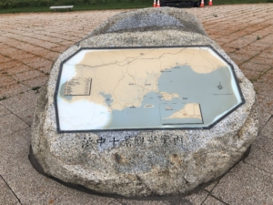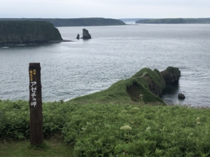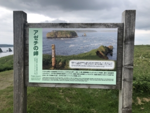 アゼチの岬 霧多布半島の西側にあり琵琶瀬湾に突き出た岬、小島・ゴメ島などが望め、真夏の落ち日は素晴らしいとの事でした。 また夏の昆布漁が盛んな時期には、早朝漁場に向かう出漁光景は迫力があるそうです。 また稲垣結衣・生田斗真さん出演の映画「ハナミズキ」のロケ地となっていました。