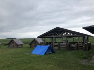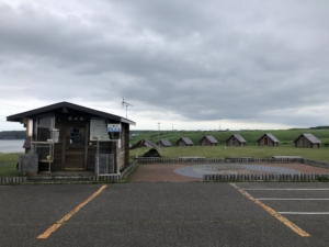 納沙布岬 標高40~60mのテーブル型の岬、太平洋に突き出た霧多布岬の周辺には展望台やキャンプ場があり、今夜の宿をこのキャンプ場にしました。 キャンプ場内の駐車場には本州各地から来たキャンピングカーで満車状態、炊事場は夕食の準備で賑わっていました。
