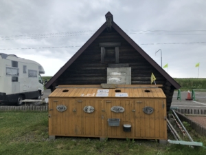 台風並みの雨風が吹いたので納沙布岬の駐車場に直行。 なんと外気温度は13℃、室内でも20℃と寒く、今夜はこの駐車場で嵐の中⛈️⛈️⛈️車泊して耐え忍ことにしました😩😩😩。