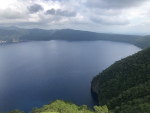 摩周湖第一展望台 弟子屈町側から摩周湖へ向かっていくと最初にある展望台。 摩周湖は周囲20㎞、面積19.2k㎡、平均水深145.9m、最大水深211mの日本国内では6番目に大きなカルデラ湖です。 摩周湖には出入りする川が一本もありません。 雨が水源のほとんどを占めていると言われ昭和6年に41.6mの世界一の透明度を誇ったこともあったそうです。 霧の摩周湖と言われ特に7月~8月は霧が出やすい為美しい姿を見る事があまりないそうですが、我々が行った時にはとてもよく見れました。 ラッキー🎊🎊🎊