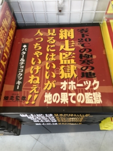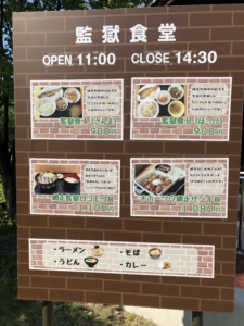 チケット売り場の近くに監獄食堂がありました。 実際に網走刑務所で食べられている物を再現した食事だそうです😅😅😅。 でも私からしてみれば種類も色々あって贅沢な食事だと思いました🤤🤤🤤。
