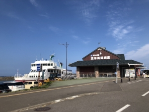 道の駅「流氷街道網走」 カモメが飛びかい、漁船が行き交う網走川河口に位置し、地域の情報や農水加工品を販売していました。 冬期間は流氷砕氷船おーろらの発着場となっています。 今夜の宿はここに決定。