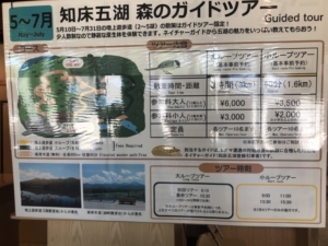 今日の予定は知床国立公園から阿寒摩周国立公園までの自然観察トレッキングの予定で出発。最初に知床五湖へ向かい駐車場(有料500円)に入ってから散策の準備。 知床五湖を散策するにフィールドハウスで500円払って入場できると思っていましたが、5月10日から7月31日までヒグマが活発に活動する時期との事で、事前申し込みとツアーガイドと一緒でないと入湖できないとの事でした。 勉強不足でした😨😅😩。 因みにガイドツアー料金は3時間(3㎞)で一人6,000円でした。 『6,000円出して散策するなら美味しものを食べた方が良い』と私の意見が採用され今回は諦め、高架木道(無料)の散策路のみ散策しました。 高架木道は駐車場を起点とした往復1.6㎞の木道で、全コースが高架になっており、周囲に電気柵(7000V)が張めぐされヒグマの危険なく歩くことができます。 コース内には一湖の湖畔展望台のほか、オコック展望台、連山展望台と三つの展望スペースが設けられていました。 また展望台からは知床連山の眺めを見る事ができました。 無料でしたが眺望が良く大変満足しました😀😀😀。