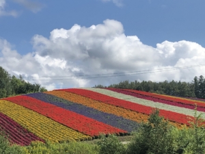 四季彩の丘 大雪山連峰と丘の景色を背景に7haの花畑がひろがり、眺望は抜群でした。