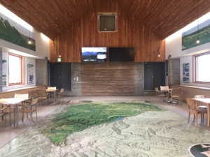 十勝岳望岳台防災シェルター 突発的な噴火による噴石から身を守る緊急指南施設。 非常品や食料などを備蓄しているほか、非常用発電機も設置されており、即時救出が困難な場合には、一時滞在施設としての機能を備えているそうです。