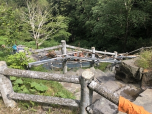 十勝岳温泉 標高1280mの北海道で最も高地にある温泉で源泉が2本、鉄分の多く含む茶褐色の湯と酸性の湯があり、十勝岳の登山口で登山終了後に温泉に入って疲れをとっている登山者が沢山いました。
