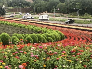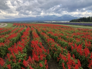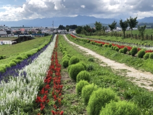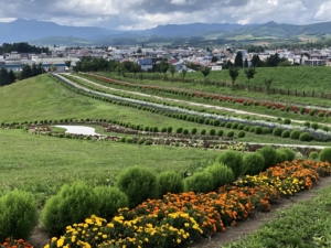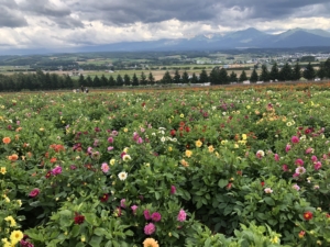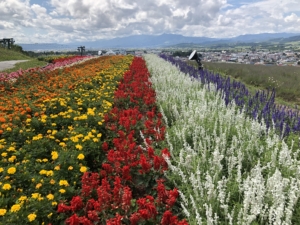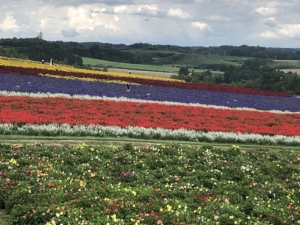 四季彩の丘 大雪山連峰と丘の景色を背景に7haの花畑がひろがり、眺望は抜群でした。