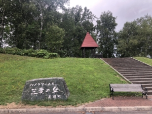 三愛の丘展望公園 波状丘陵地帯をのぞく事のできる公園で大雪山から十勝岳連峰を望むことができました。 公園内には東屋、トイレがあり、レンタサイクルで訪れる方にも大人気の場所との事でした。