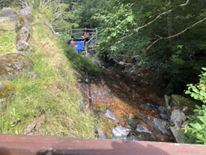 白しげの滝 国内でも有数の地下水の滝、コバルトブルーに輝く美瑛川本流にかかり、十数条の細い糸を引くように落水する美しい景色を橋の上から見る事ができました。