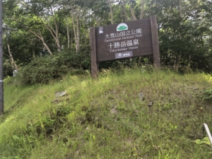 十勝岳温泉 標高1280mの北海道で最も高地にある温泉で源泉が2本、鉄分の多く含む茶褐色の湯と酸性の湯があり、十勝岳の登山口で登山終了後に温泉に入って疲れをとっている登山者が沢山いました。