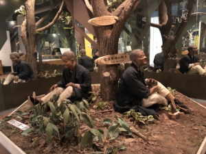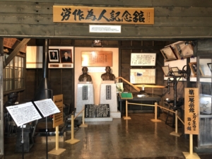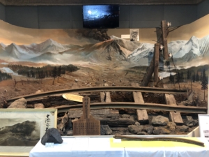 十勝岳の噴火による犠牲者の数の数珠丸と当時の木材加工の様子を人形で表現してました。