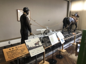 内地は気温40度になり熱中症に注意とかとニュースで言ってましたが、こちら富良野の朝は18度・寒くて目が覚めました。 小雨模様で十勝岳連峰は霧で霞んでいました。 今日は美しく、雄大な北の大地「富良野」を20年以上もの歳月と共に撮影された人気ドラマ「北の国から」のロケ地を探しながら富良野市内を散策する予定で出発🚌💨。 昨日何気なく通り過ぎた「土の館」、どんなところかと思い立ち寄りました。 なんと北海道の開拓の歴史を農業機械を通して見る事ができました。