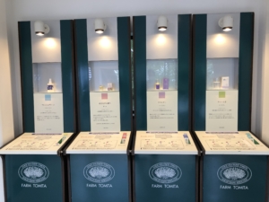 園内にはハーブ工場があり花から抽出したエキスを香水やせっけんなどに加工して販売していました。
