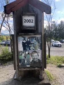 北の国からのロケ地「拾ってきた家」 「2002遺言」で五郎が雪子の為に作った家。廃材を使ったユニークの家 入口には黒板五郎の遺言の碑がありました。