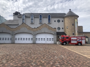 裏から見たニッカウヰスキー工場と余市消防署庁舎