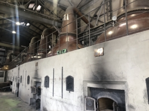 蒸留窯 もろみを加熱し、アルコール分と香味成分を抽出します。 余市蒸留所では、石炭直火蒸留によって重厚でコクのあるモルト原料を作っています。 現在人の手で石炭を燃やし蒸留しているところはここ余市だけとの説明でした。