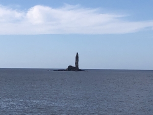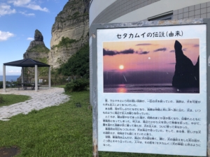 セタカムイ岩 アイヌ語で”犬の神”という意味を持っている岩で、遠くからちょうど犬が首を挙げて遠吠えしている様な姿に前ます。 伝説は写真を拡大して観てください😅😅。