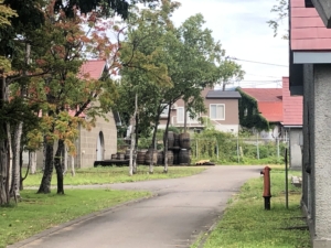 裏から見たニッカウヰスキー工場と余市消防署庁舎
